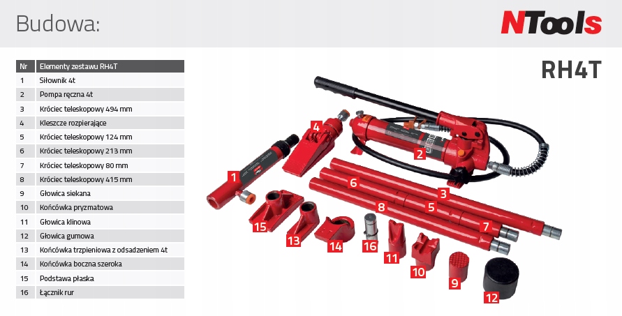 Rozpierak hydrauliczny 4 TONY z akcesoriami ZESTAW BLACHARSKI | NTools 4T
