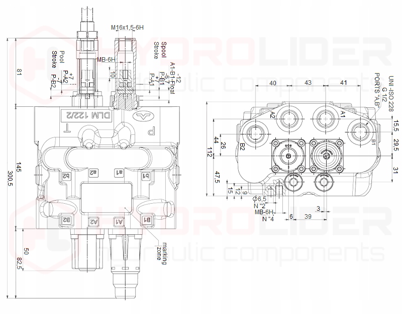 - 2-секционный гидрораспределитель 80 л/мин с одной плавающей секцией