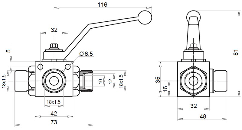 ГІДРАВЛІЧНИЙ РУЧНИЙ КУЛЬОВИЙ КРАН 3/2 ХОДОВИЙ HYDROLIDER M18 40 Л