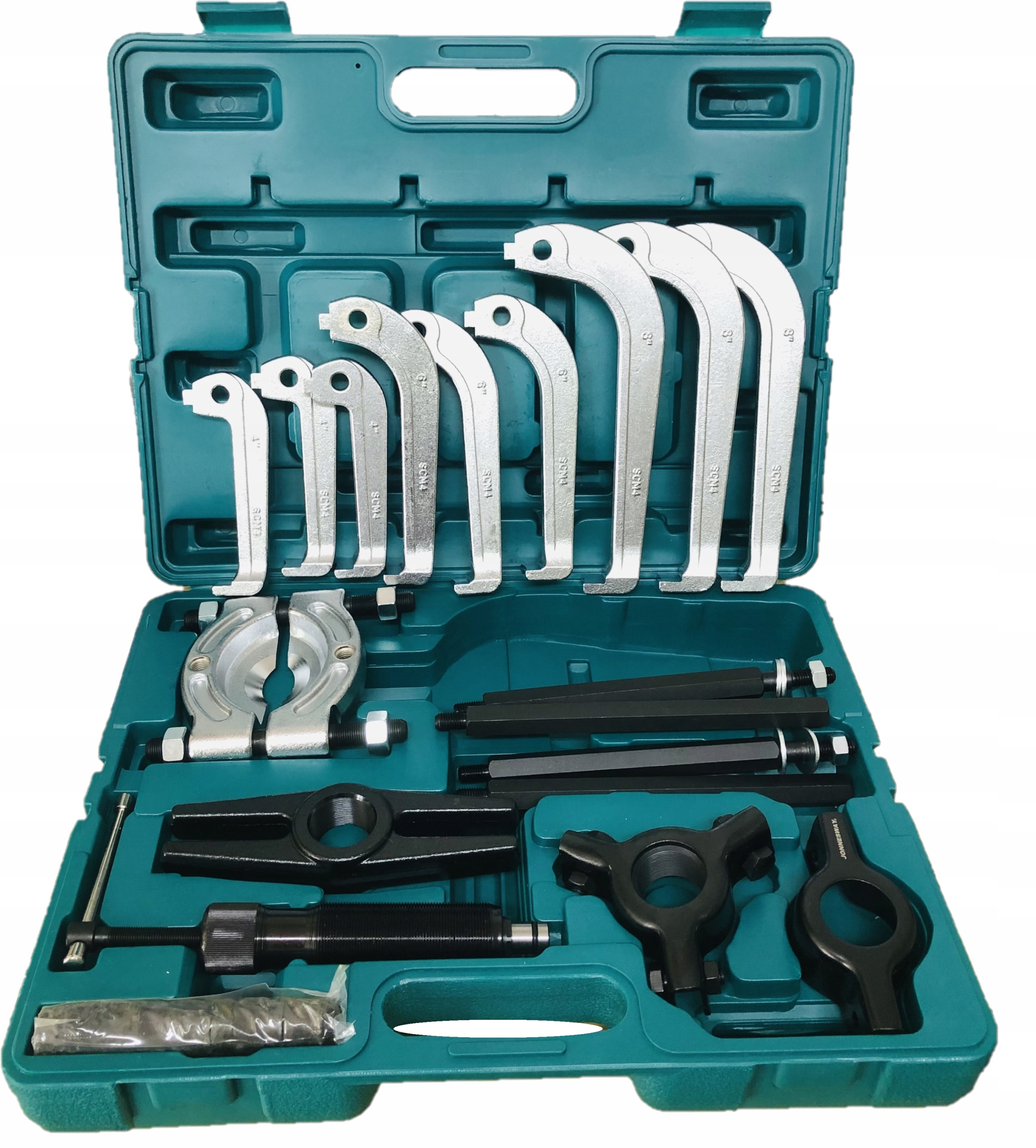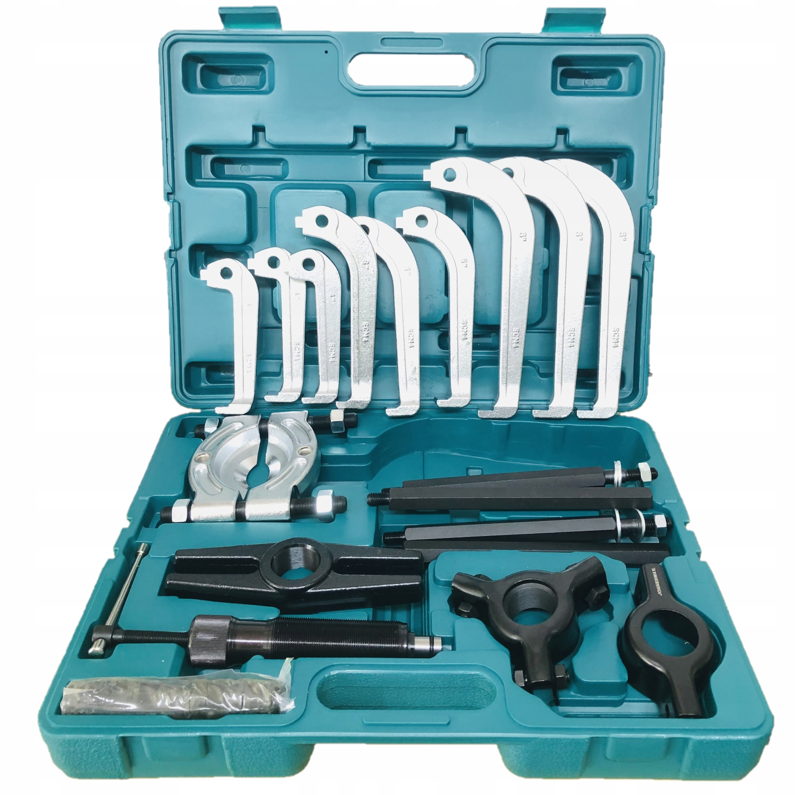 В комплекте имеется съемник и съемник из кованой стали.Все элементы работают с приводом усилием 10 тонн.Устройства предназначены для снятия подшипников, шкивов, шестерен, валов и других застрявших деталей и приспособлений, применяемых в механике.