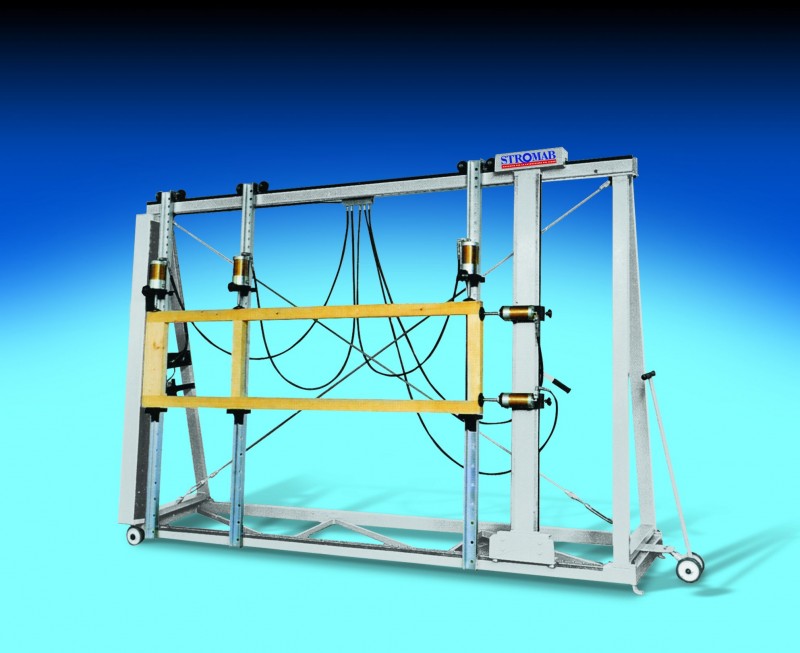 МОД. STP 2500/D: Двухсторонний пресс с восемью скользящими вертикальными балками и двумя ручными прижимными балками.