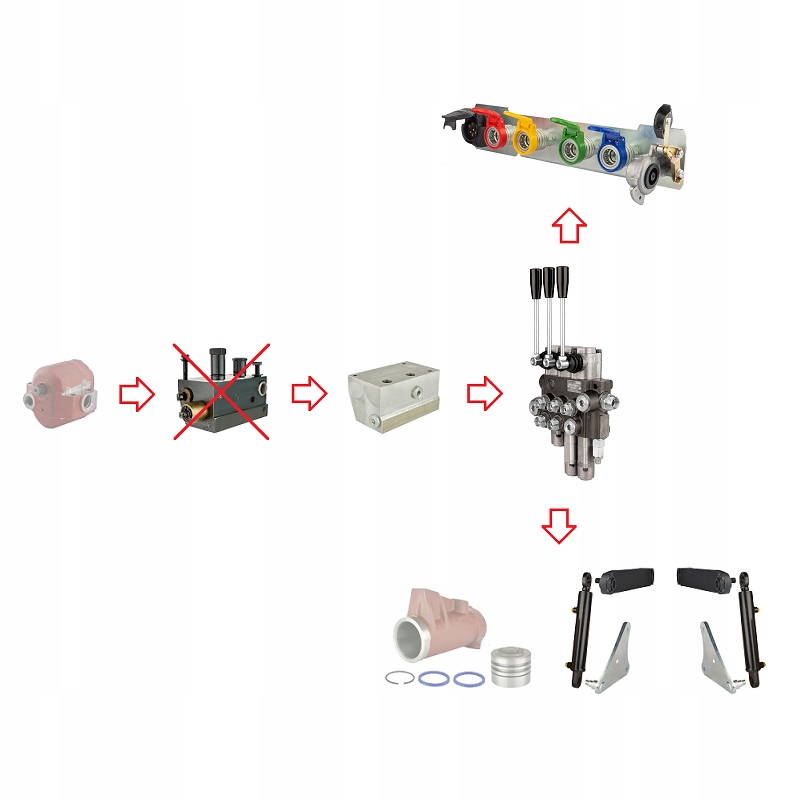 Польское производство, установлен адаптер вместо оригинального трамблёра в крестовине. Использование адаптера вместо оригинального распределителя по-прежнему позволит управлять заводским подъемным цилиндром, подключив к гидросистеме внешний распределитель, установленный в кабине на крыле. Адаптер получает питание от заводского насоса, как и оригинальный распределитель.