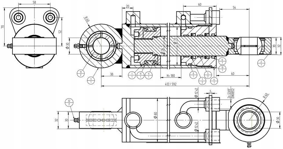 - Общая длина цилиндра в разложенном виде 592 мм,