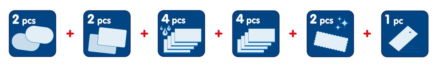 Непромокаемая пленка для зеркал и окон предотвращает скопление капель воды и грязи. В комплект входит 4 детали: две размером 135х95 мм для зеркал и две для стекла размерами 200х175 мм. Дополнительно в комплект входит сборочный комплект.