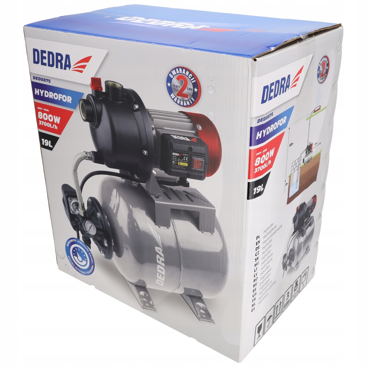 Гідрофор DEDRA Гідрофорний насос для резервуара для води 19 л Ефективний 800 Вт