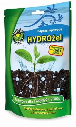 Гидрогель – суперабсорбент, препарат со структурой мелких кристаллов, характеризующийся способностью впитывать воду. Процесс поглощения и выделения воды может повторяться много раз в течение вегетационного периода. Впитывая последующие порции воды из осадков или полива, гидрогель увеличивает свой объем, образуя гель. В периоды длительного отсутствия осадков и засухи растения поглощают воду, запасенную в гидрогеле, который легко доступен растениям.