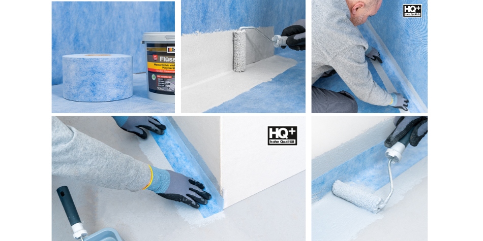 Перепечная лента разрезана до правой длины и расположена на свежей, ранее приложенной герметичной массе (жидкая фольга, двух -компонентная герметичная масса), которая действует как адгезивный субстрат. Убедитесь, что уплотнительные ленты перекрываются не менее 5 см. Неравенство и искажение можно сгладить с помощью шпага. Наконец, от 2 до 3 слоев герметичной массы применяются к данной области, а герметичная лента полностью покрыта материалом. Внутренние углы и внешние углы обрабатываются в углах. Стенные или полы установлены в трубчатых переходах.