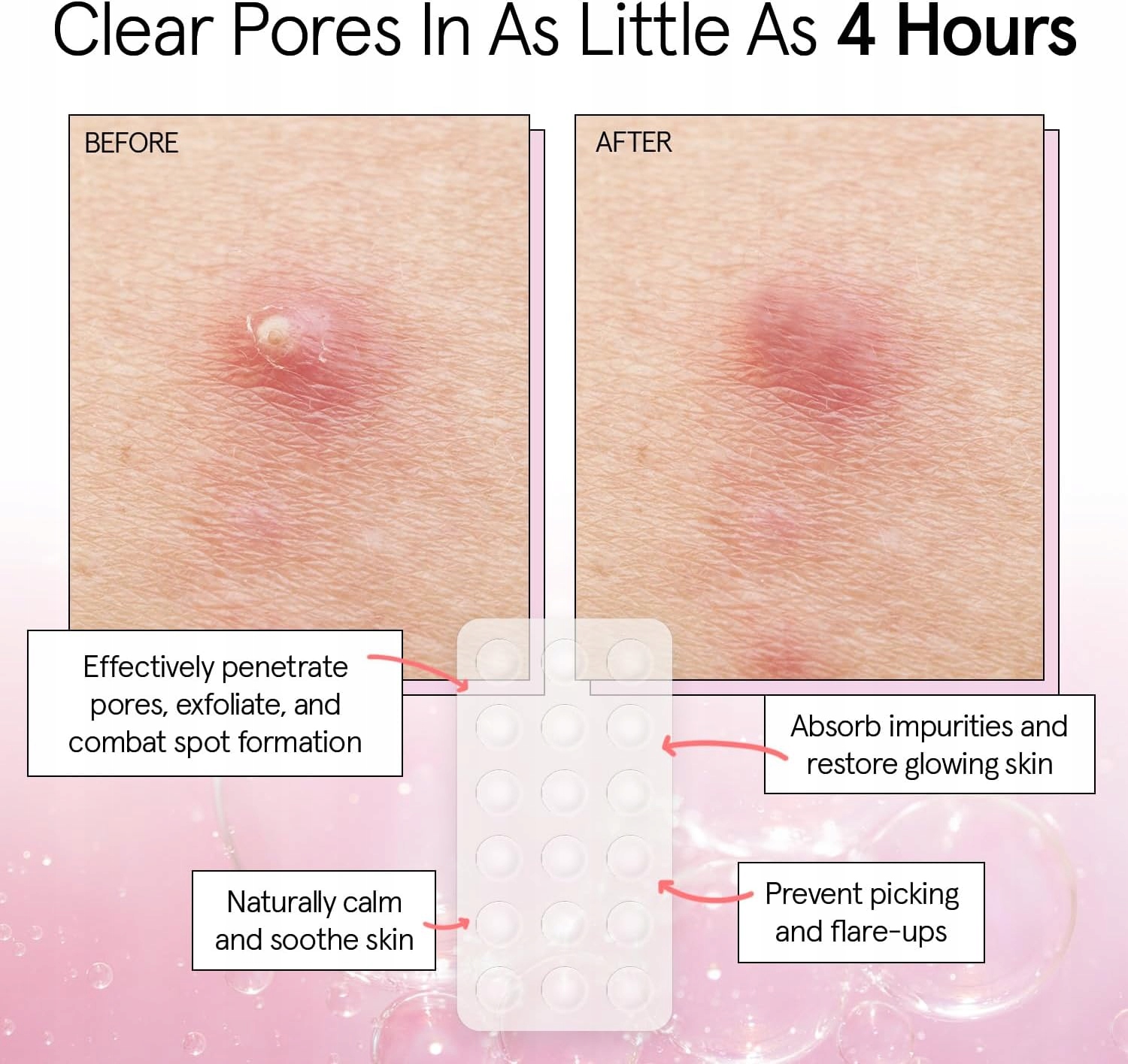 <р> Обогащенные маслом чайного дерева и салициловой кислотой, они успокаивают кожу и обладают антибактериальными свойствами. Они идеально подходят для дня и ночи, обеспечивают защиту и комфорт. <р> Бесцветные и незаметные, эти веганские патчи остаются незаметными на коже, придавая уверенности в себе. Тщательно разработано с учетом вашего образа жизни. <р> Доверьтесь патчам Grace & Stella и наслаждайтесь более здоровой кожей. Идеально подходит для всех типов кожи и всегда готов помочь вам почувствовать себя лучше.Параметры продукта