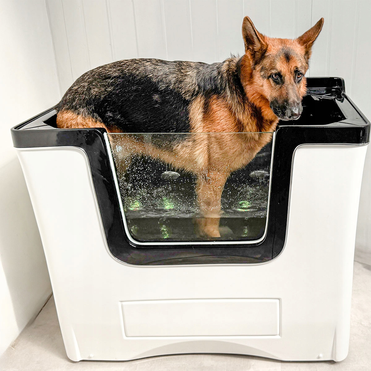 Нежные струи воды и микропузырьки расслабляют собаку, улучшают кровообращение и уменьшают мышечное напряжение.