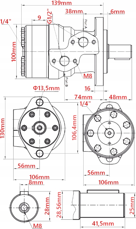 ГИДРАВЛИЧЕСКИЙ МОТОР ГРУППА 2 BMR 50см3 ВАЛ 25 мм