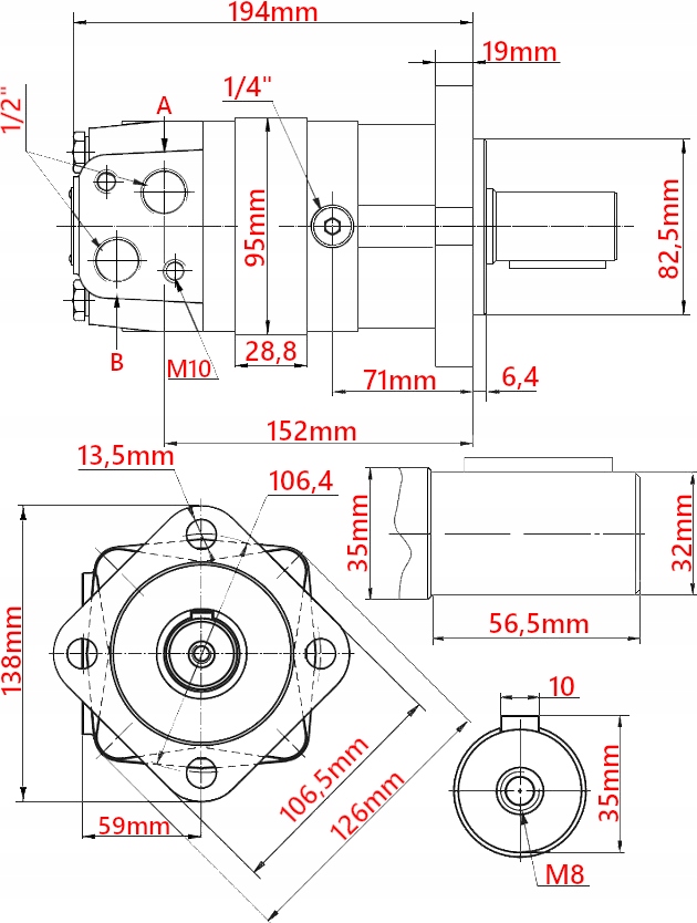 ГИДРАВЛИЧЕСКИЙ МОТОР ГРУППА 3 BMS 160см3 ВАЛ 32 мм