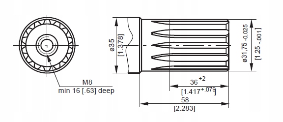 C: глубина 4xM8–13 мм [0,51 дюйма]