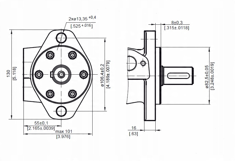 C: 4xM8 — глубина 13 мм [0,51 дюйма] p>