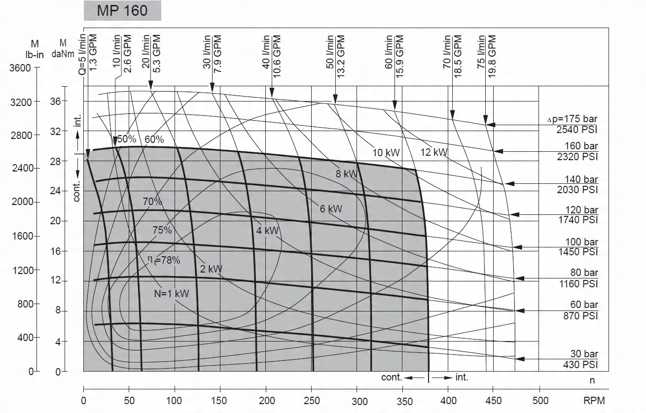 Рядом показана универсальная характеристика объемного двигателя MP 160 CD.