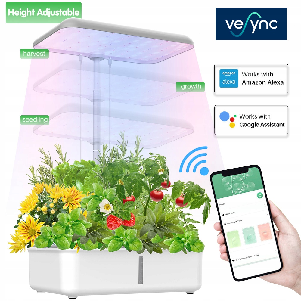 - [3 режима роста и интеллектуальное управление светодиодами] - Режим «Детская», режим «зеленых листьев» и режим «цветок-фрукт». Три режима полностью охватывают цикл роста растений. Поддержка Wi-Fi, дистанционное управление, интеллектуальное напоминание, напоминание об обратном отсчете питательного раствора. Водяной насос, интеллектуальное время освещения, регулировка в режиме реального времени в соответствии с потребностями, голосовое управление Alexa, Google Assistant.