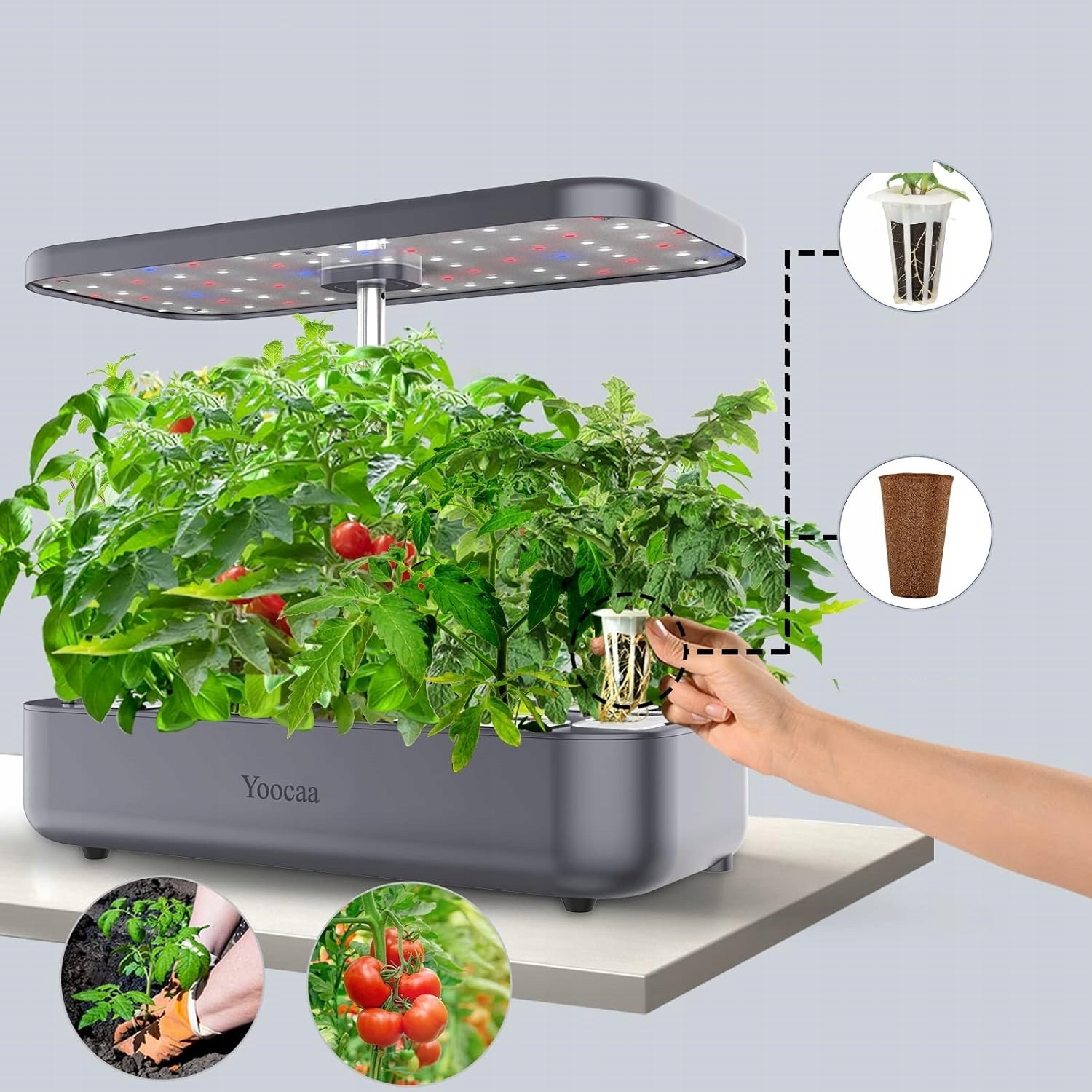 В наборе Yoocaa можно выращивать до 12 растений одновременно, что позволяет получать больший урожай и большая экономия. Крытый огород полностью автоматический и самополивающийся – без почвы и лишних хлопот. Благодаря этому свежая зелень всегда под рукой, круглый год.
