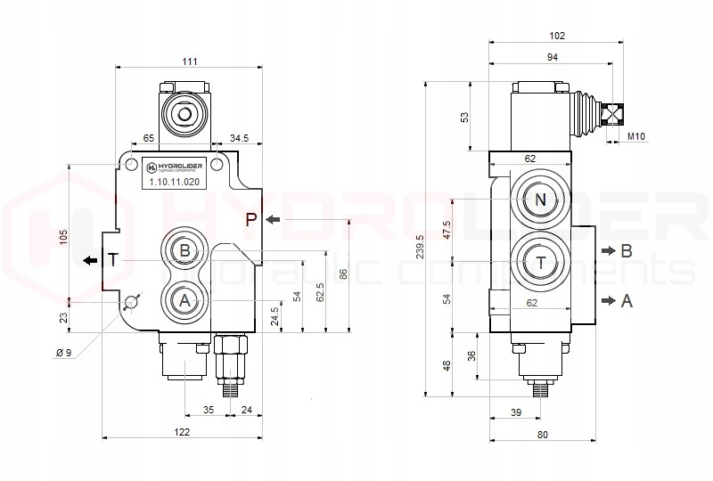 Предназначен для управления односторонним или двусторонним цилиндром. Он имеет выход давления N, необходимый для последовательного соединения или для установки распределителя в качестве другого в существующей системе.