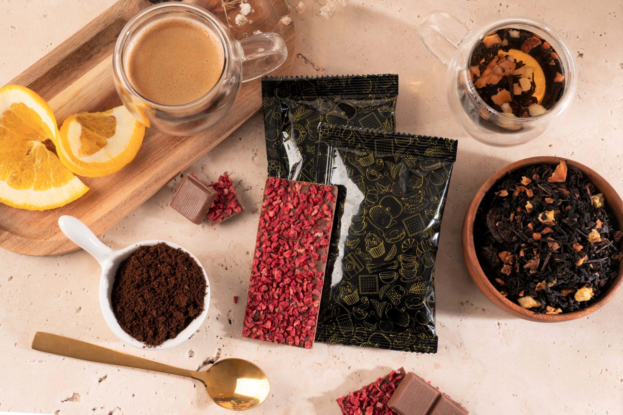 Содержание подарка чрезвычайно универсально, поэтому он понравится каждому, независимо от празднуемого случая и предпочтений получателя. Кофейные зерна с неповторимым вкусом апельсина в шоколаде, листовой чай с заметной ноткой яблочного пирога и неаполитанский шоколад с добавлением сублимированных фруктов – просто, вкусно и стильно!