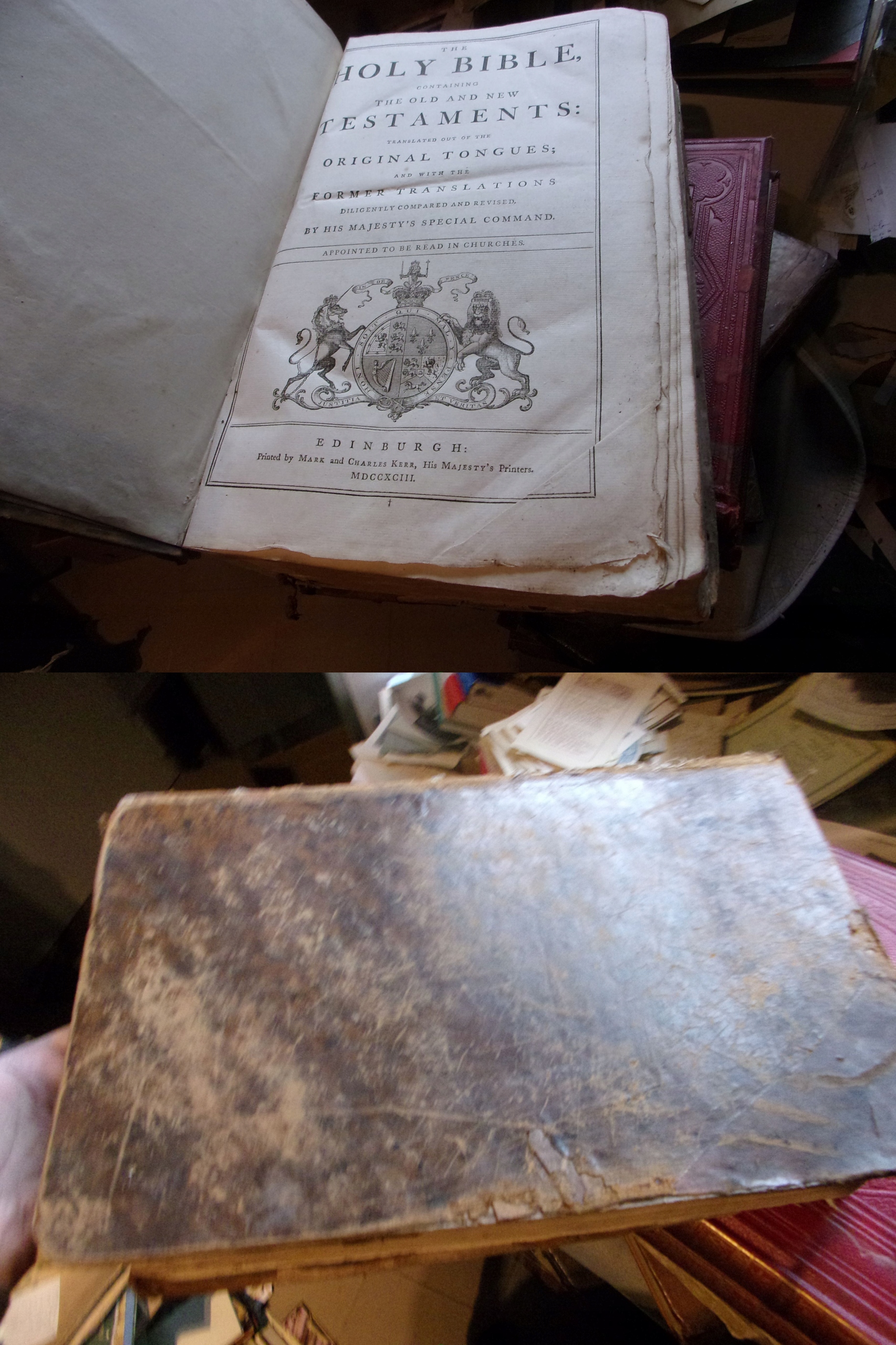 гигантский кожаный переплет КОРОЛЯ ИАКОВА БИБЛИЯ ВЕТХОГО И НОВОГО ЗАВЕТА 1793 г.