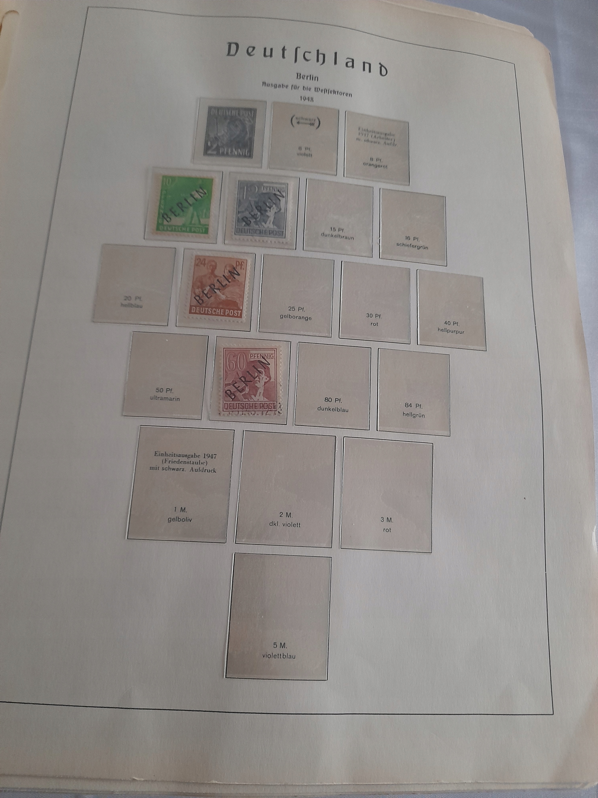 В галерее 147 фотографий. Огромный альбом из 137 карточек с ценной гигантской коллекцией предметов БЕРЛИНА 1948-1990 годов. Первый комплект изделий проштампован клеем в защитных наклейках, а второй комплект предметов тех же лет проштампован на наклейках. Ценности в различных состояниях. Сбор должен быть завершен. Альбом со значительными следами использования, заметными на фотографиях. Все показано на фотографиях. Состояние как на фотографиях.