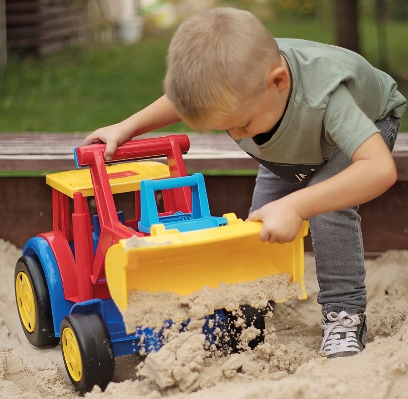Гигантское зарядное устройство для трактора в красном желтом-большая игрушка с реалистичным внешним видом, которая измеряет 60 см. Оснащенный подвижной ложкой, он действует как зарядное устройство и бульдозер, что обеспечивает творческое веселье. Изготовленный из прочного, безопасного пластика, он устойчив к различным погодным условиям, идеально подходит для игры дома, в саду или во дворе . Игра с трактором поддерживает моторное развитие ребенка и стимулирует воображение.