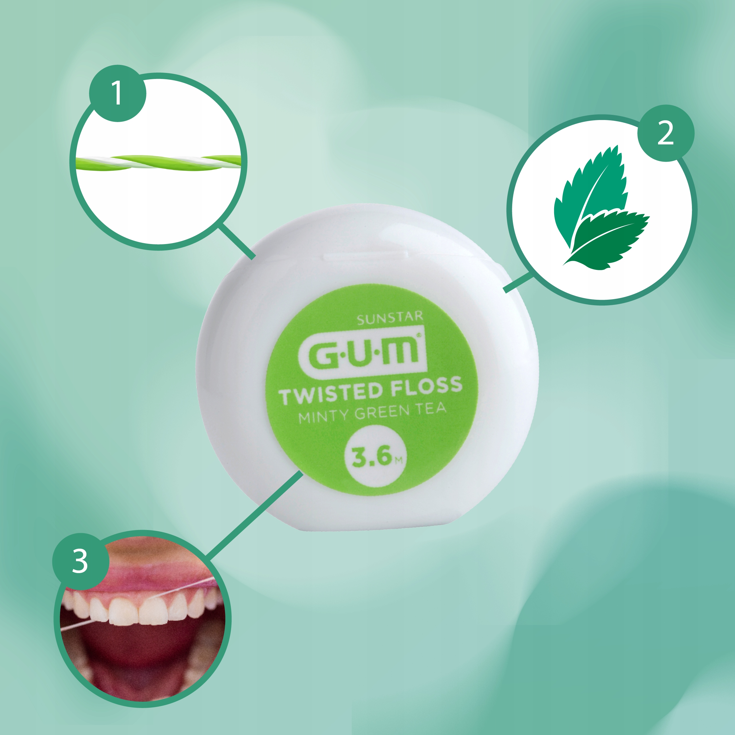 - 1 x Dental thread Gum® Twisted Floss (3.6 m),