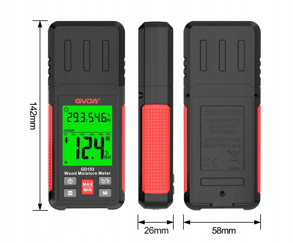 Гігрометр GVDA Вологомір для деревини та бетону, цегляних стін