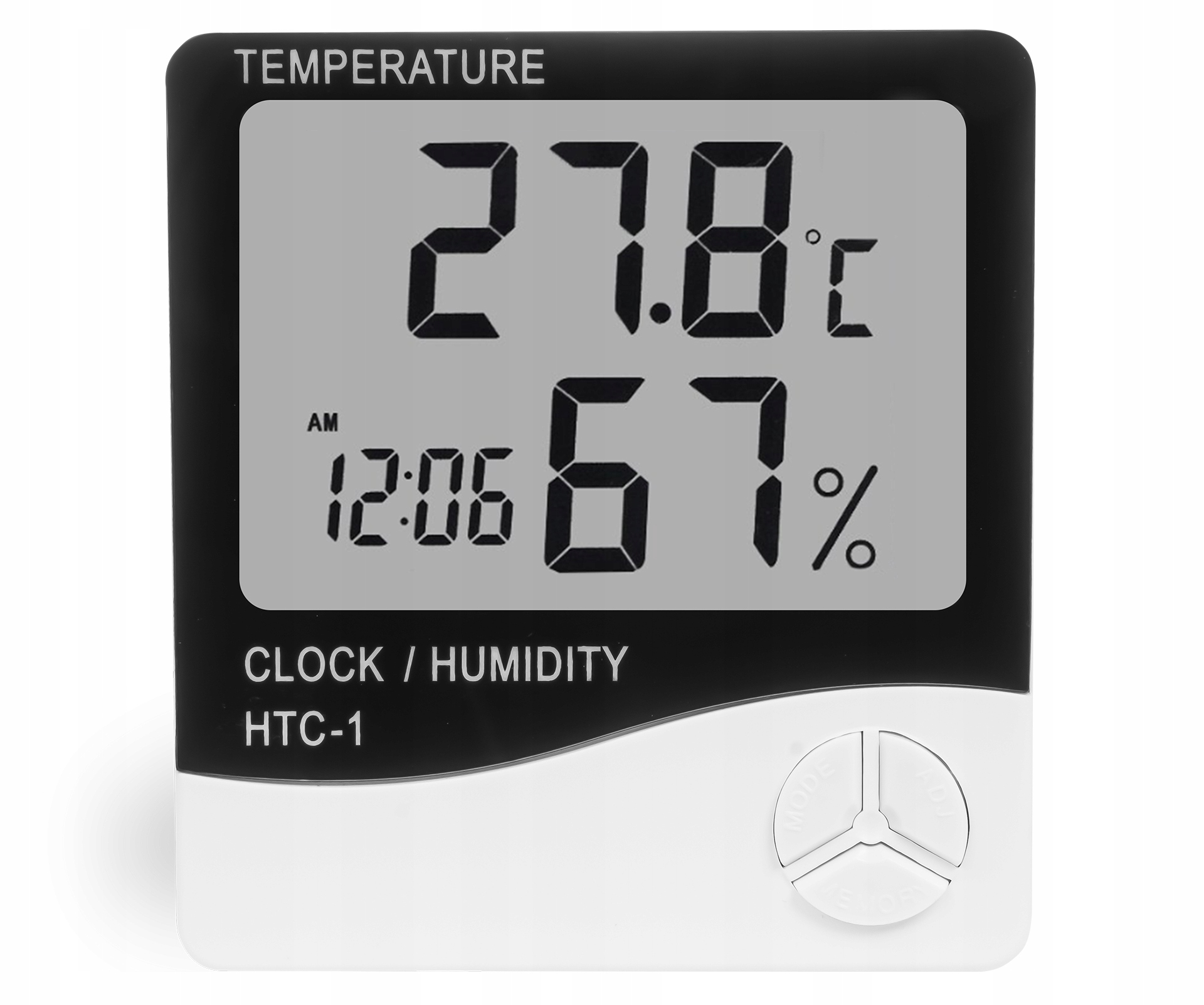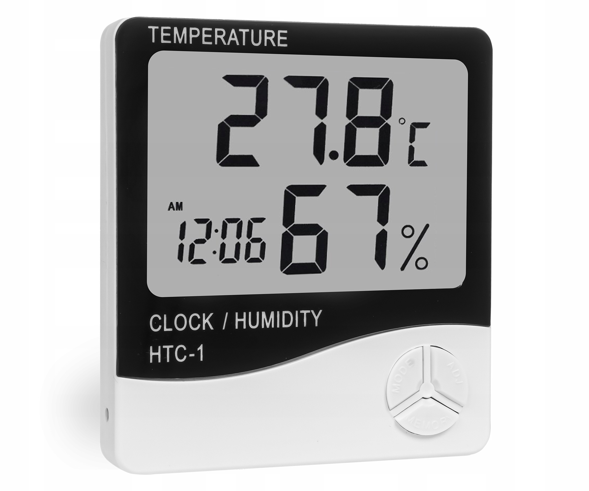 Многофункциональное устройство для считывания температуры и влажности с ЖК-дисплеем, позволяющим считывать отображаемые значения. Устройство имеет функцию памяти, встроенный будильник и режим календаря.