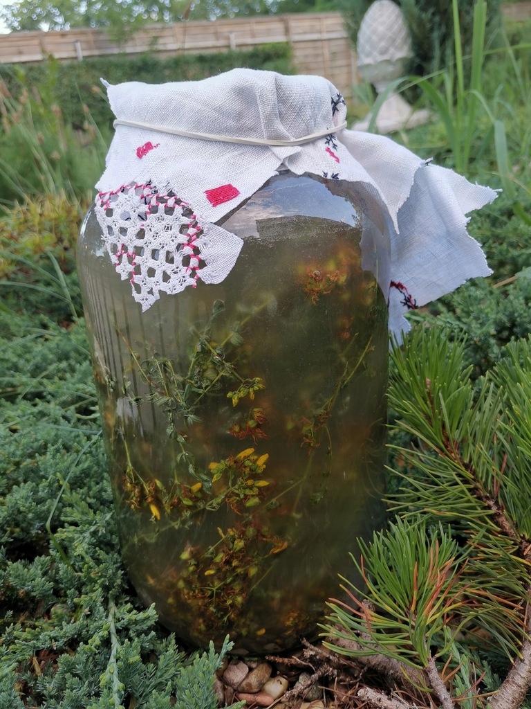 Теперь мы создаем различные приготовления от зверя Святого Иоанна, таких как уксус и масла Святого Иоанна.