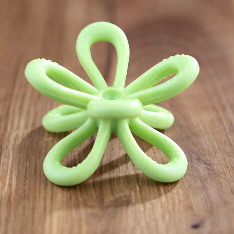 Трёхмерный силиконовый прорезыватель в форме цветка — незаменимый аксессуар для каждого стильного малыша! Он изготовлен из практичных петель, благодаря которым маленьким ручкам легче захватывать прорезыватель. Цветок мягкий и устойчивый к раздавливанию, а украшающие его выступы обеспечат облегчение при прорезывании зубов, мягко массируя воспаленные десны.