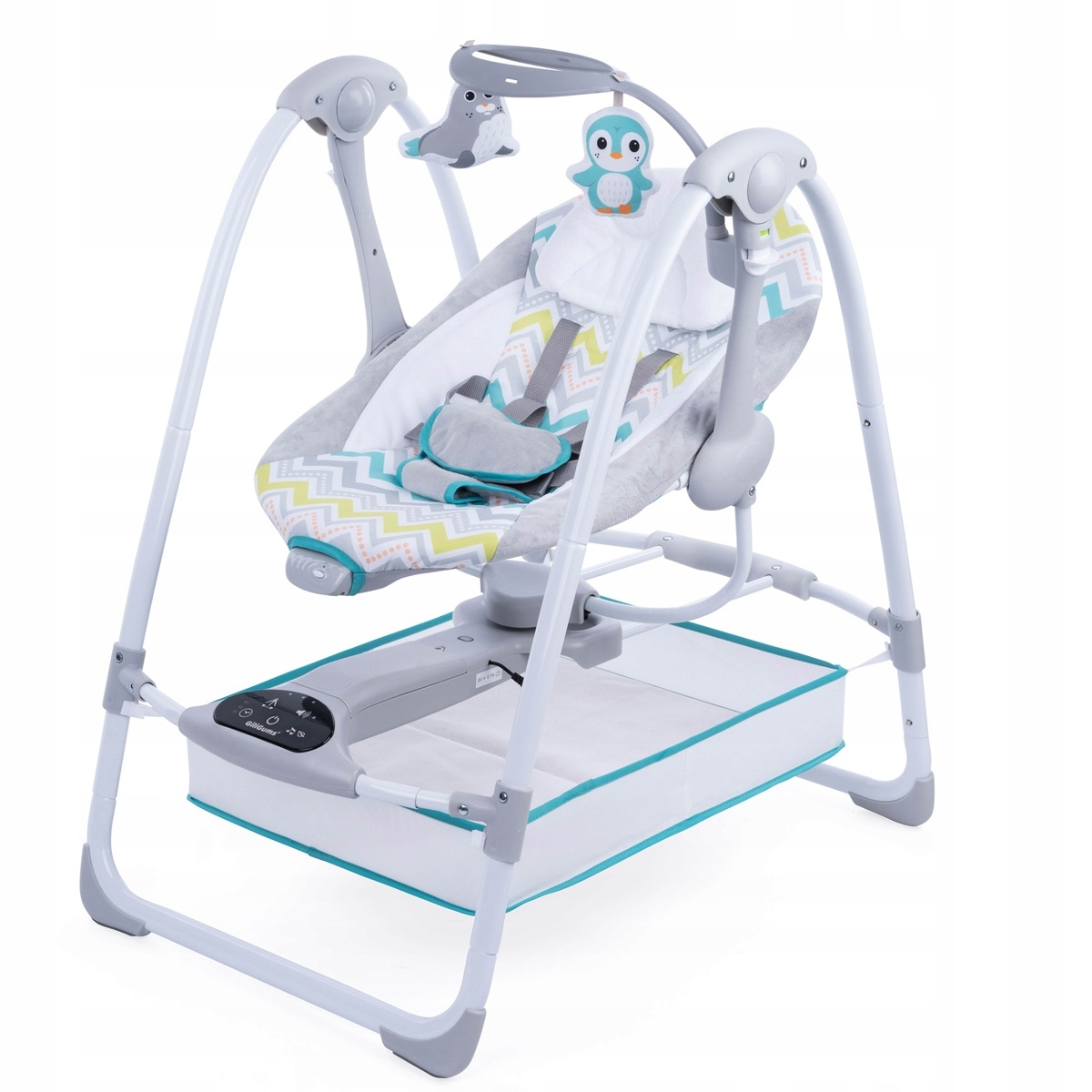 Удобные качели, обладающие множеством полезных функций. Здесь вы найдете съемную подставку для игрушек, контейнер для самых необходимых предметов, съемный подголовник, функцию вибрации и сенсорную панель, отвечающую за запуск мелодии, управление скоростью покачивания и программирование таймера. Мы можем выбрать одну из трех различных настроек времени, поэтому мы можем легко настроить качели в соответствии с индивидуальными потребностями ребенка. Замок качелей позволяет использовать качели в статическом режиме, а нескользящие ножки и 5-точечный ремень безопасности обеспечивают безопасность ребенка. Возможность сложить качели в горизонтальное положение облегчает их хранение и переноску. В комплект входит переходник, позволяющий подключить Качели ТулиЛули Делюкс к электричеству. Функция питания от аккумулятора позволяет использовать качели там, где нет доступа к электросети. Продукт предназначен для детей весом от 3 до 9 кг.