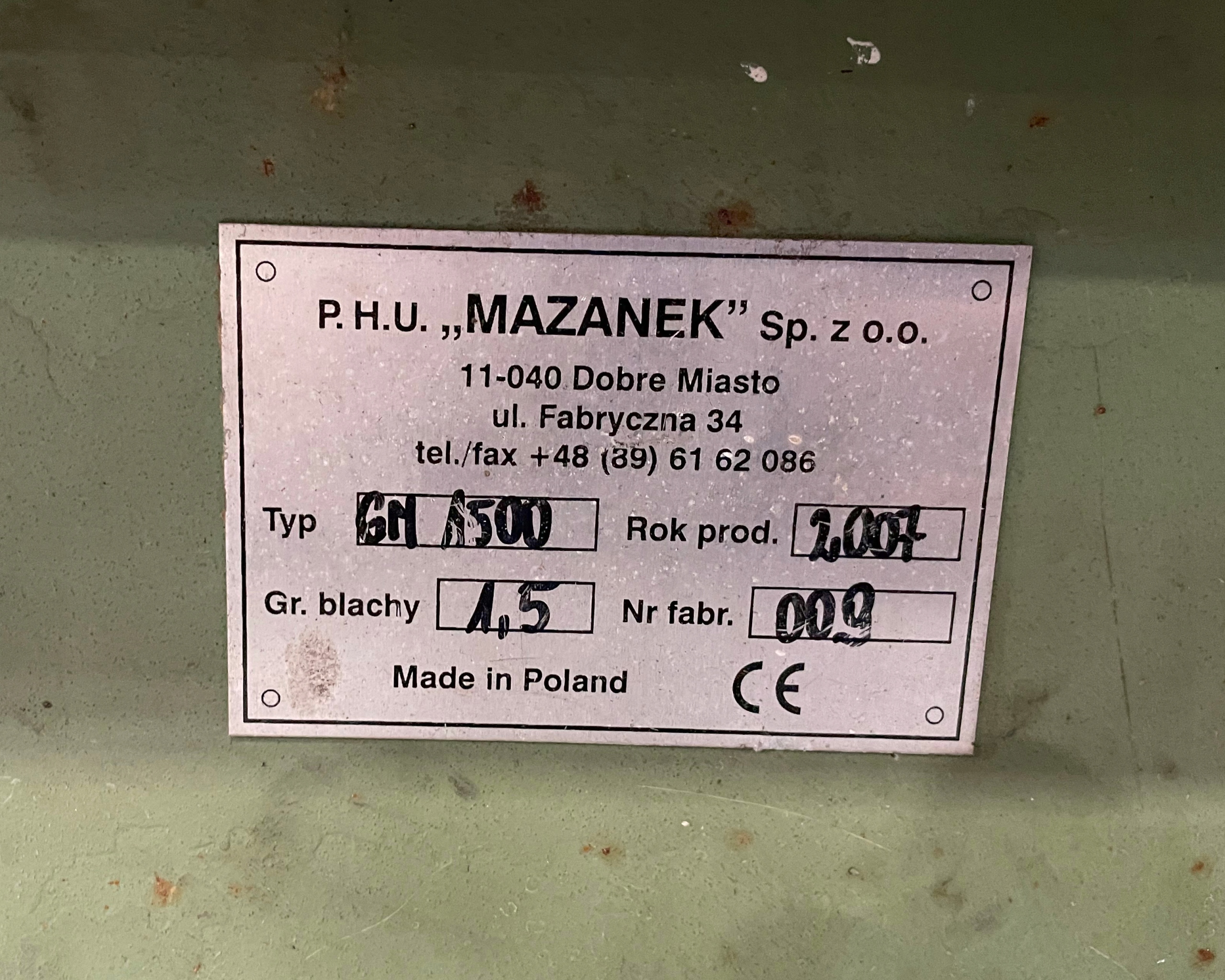 Gilotyna do blachy 1,5mm Mazanek GM1500 2007