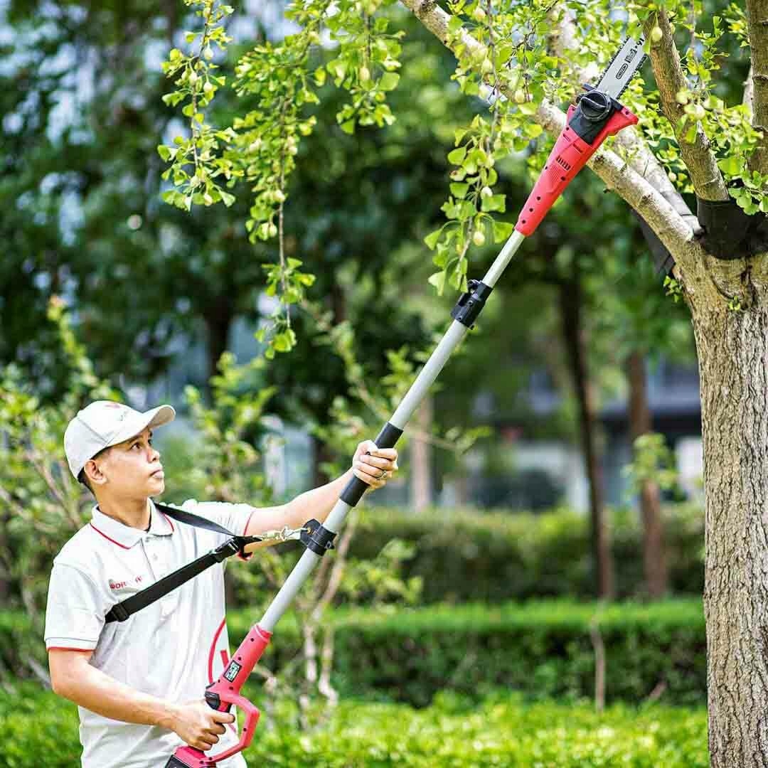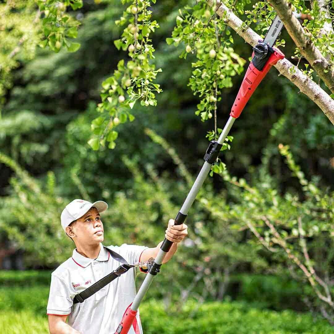 - Выдвижной, регулируемый рычаг в диапазоне 1880– 2700мм обеспечивает доступ к высокорастущим ветвям,