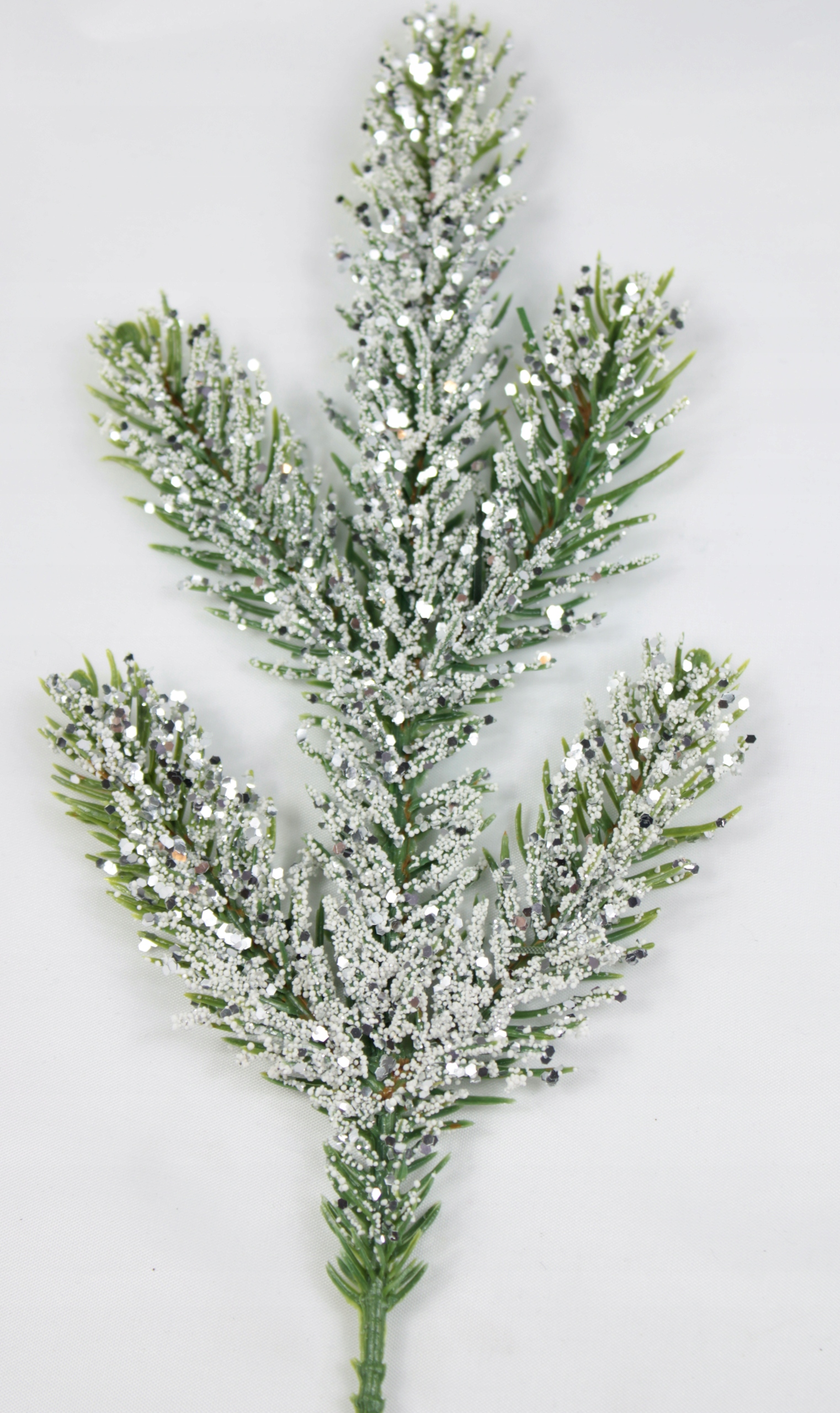 Gałązka świerk ośniezona oszroniona brokat choinka PE silikon SILVER