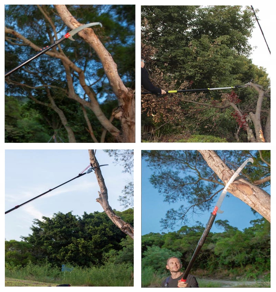 Изделие оснащено телескопической ручкой, которую можно регулировать в диапазоне от 135 см до 300 см и < б >лезвие из закаленной стали SK5.