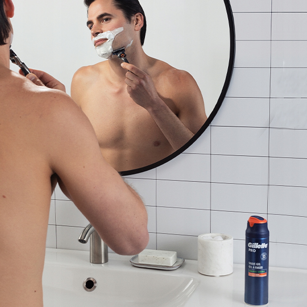 Для достижения наилучших результатов используйте гель для бритья Gillette Pro с бритвой Gillette, чтобы обеспечить непревзойденный комфорт и чистоту бритья.