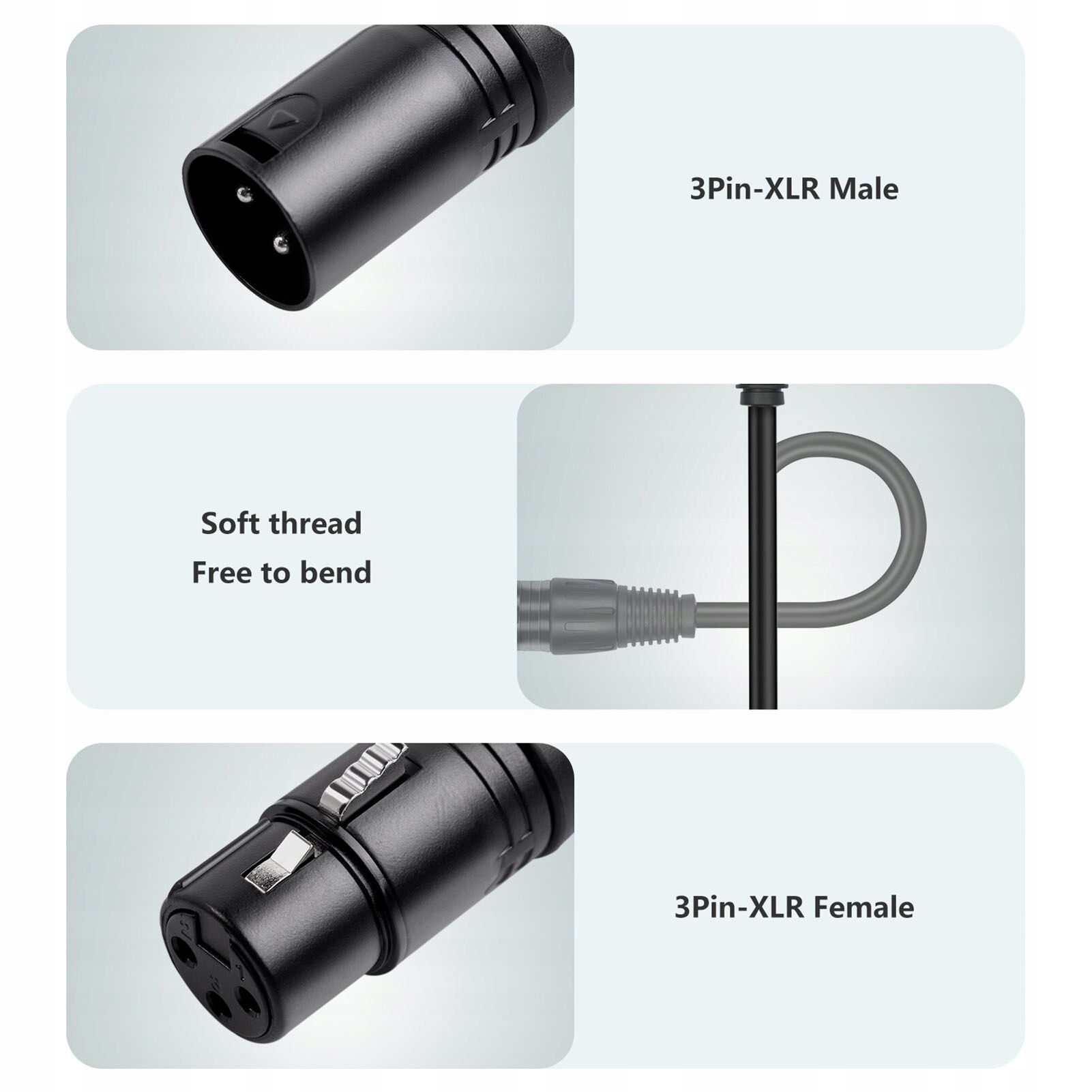 5. Стабильный сигнал: благодаря прочный бюст XLR, вы можете устранить потерю сигнала и статический шум, обеспечивая растяжение и улучшение передачи сигналов, и корпус меди преобладает любым углами, что предотвращает качество звучания. Разделен ближе к женскому концу XLR, внешний диаметр провода составляет 4,0 мм, а кавита составляет около 30 см