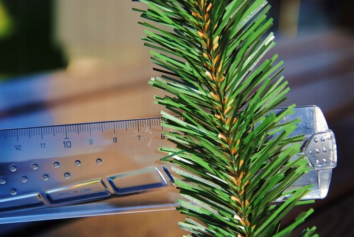 - посередине веточки короткие коричневые иголки, имитирующие кору
