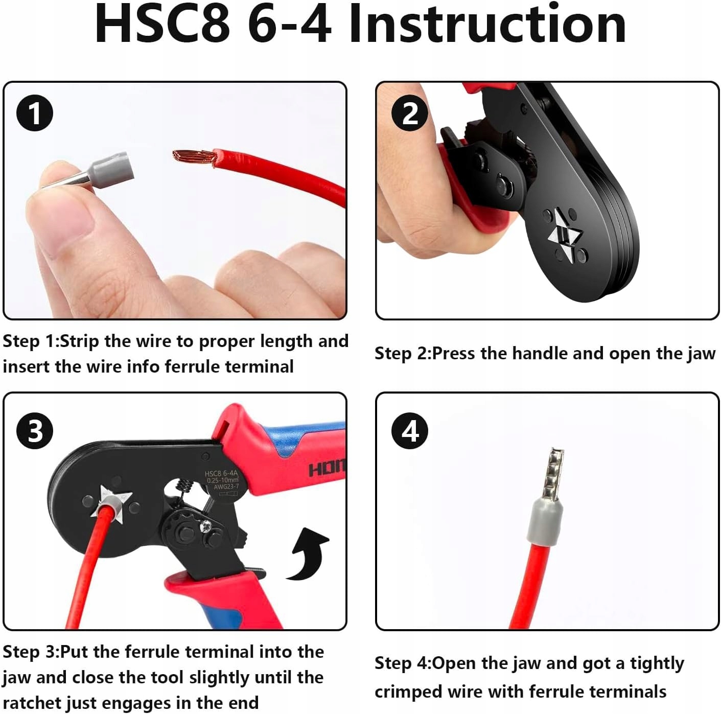 Высококлассный обжимной инструмент, предназначенный для обжима изолированных и неизолированных наконечников размером от 0,25 до 10 мм2.
