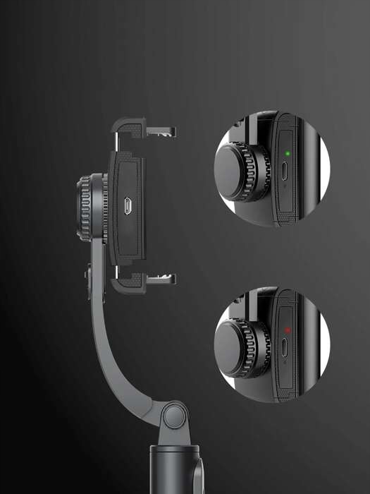 - Держатель телефона оснащен встроенным одноосным стабилизатором, обеспечивающим плавное движение во время съемки.