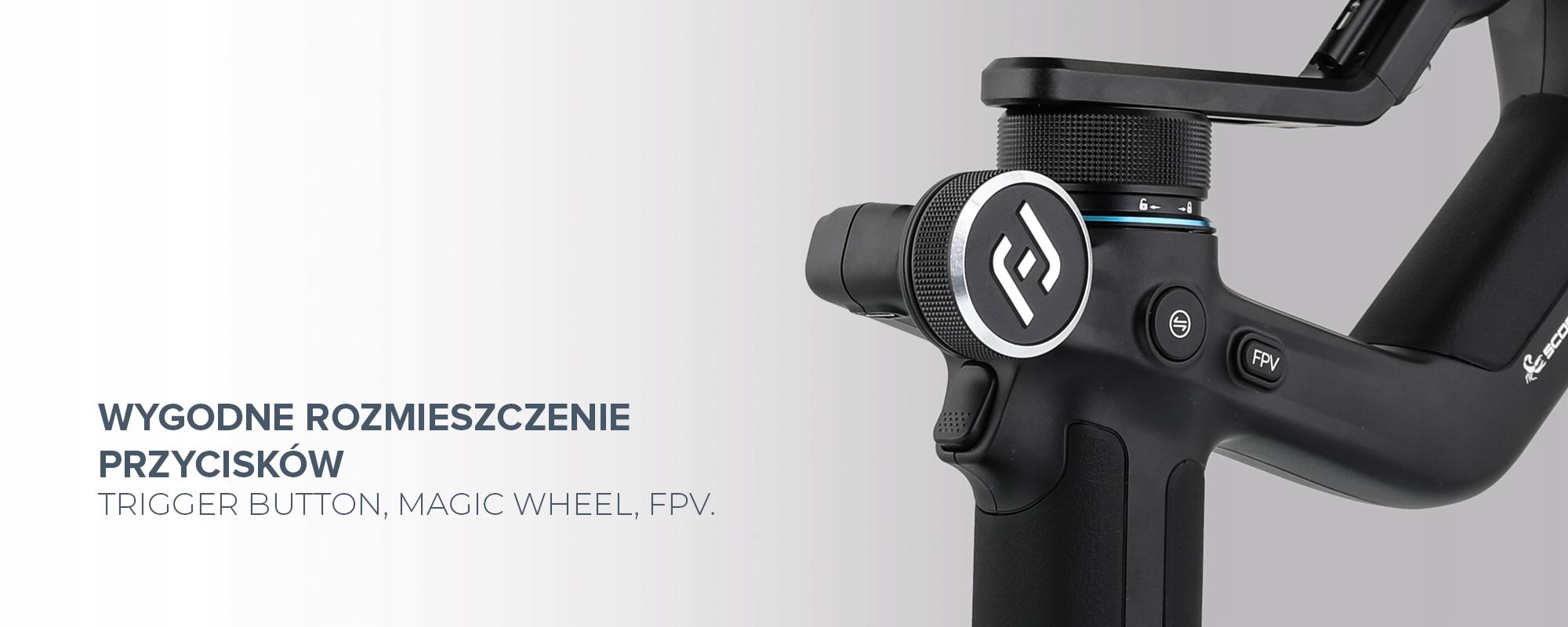Используя ручку «Волшебное колесо», вы удобно сделаете точные движения в выбранной оси, без необходимости сосредоточиться на джойстике или экране. Оптимальное положение кольца позволит управлять определенным параметром в невозмутимым образом при съемок. Однако это еще не все. Ручка, которая оснащена мини -ручным шрифтом Feiyutech Scorp F1, позволяет управлять электронными фокусировками или модуль Focus Follow, приобретенного отдельно. Дополнительный аксессуар позволит вам создать еще лучшие фильмы!