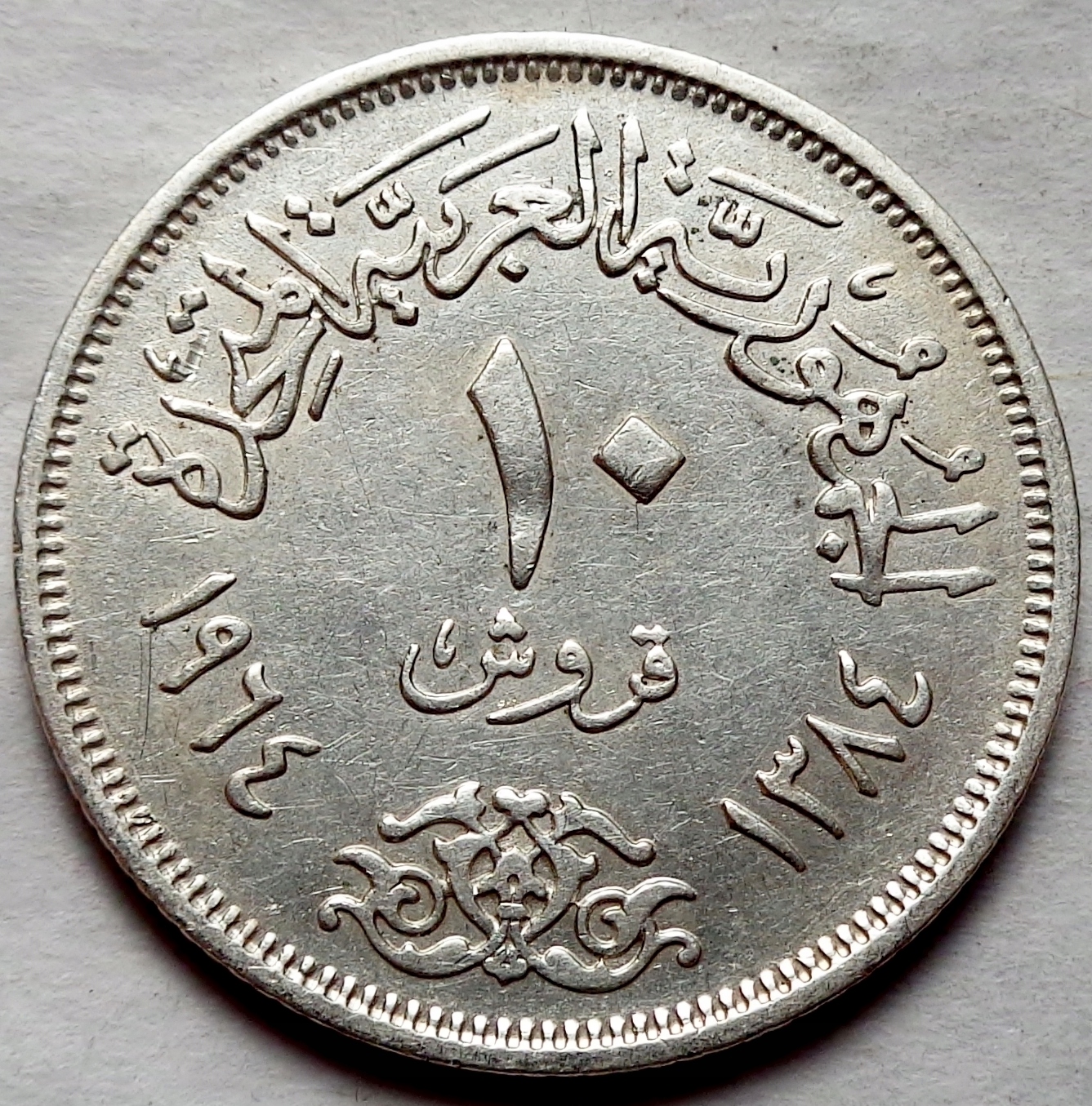 Єгипет - 10 кіршів - 1964 - Розворот Нілу - срібло