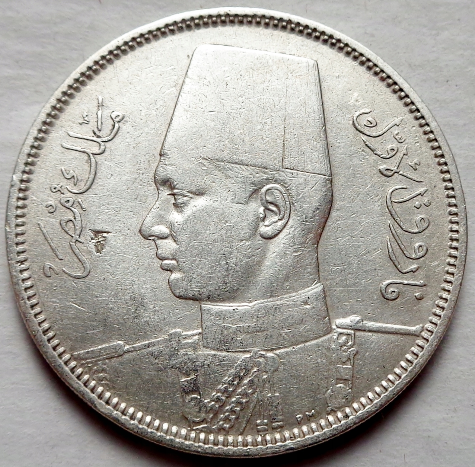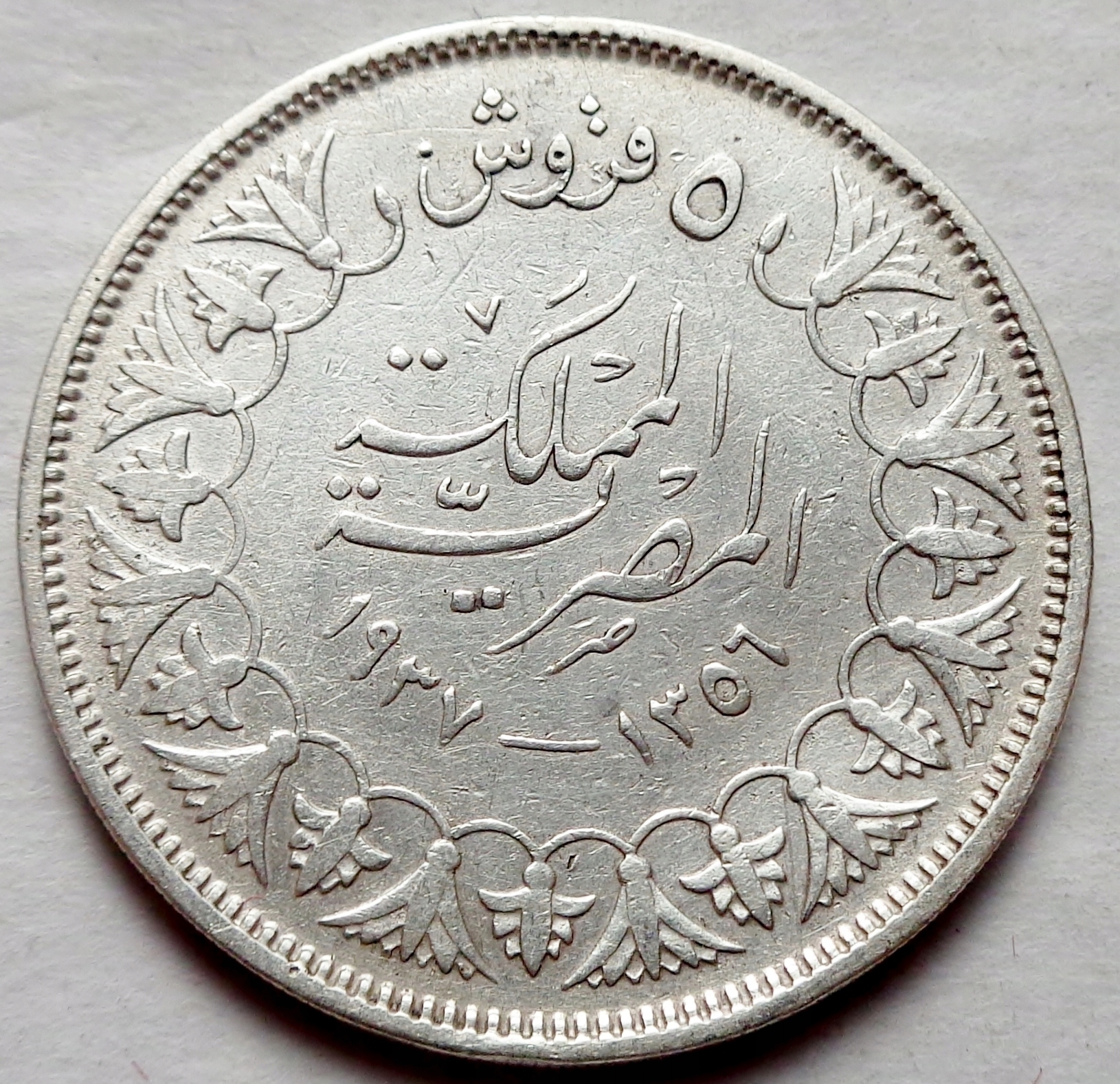Єгипет - 5 кіршів - 1937 - Фарук I - срібло