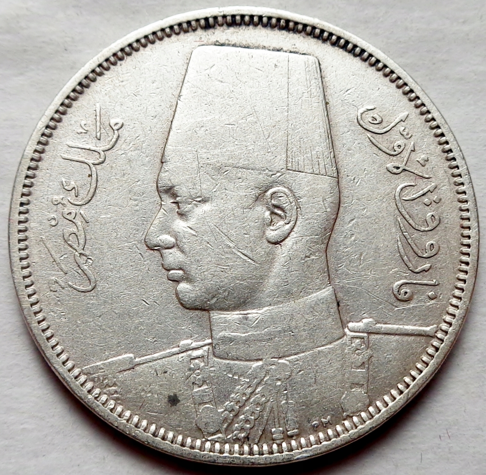 Єгипет - 5 кіршів - 1939 - Фарук I - срібло