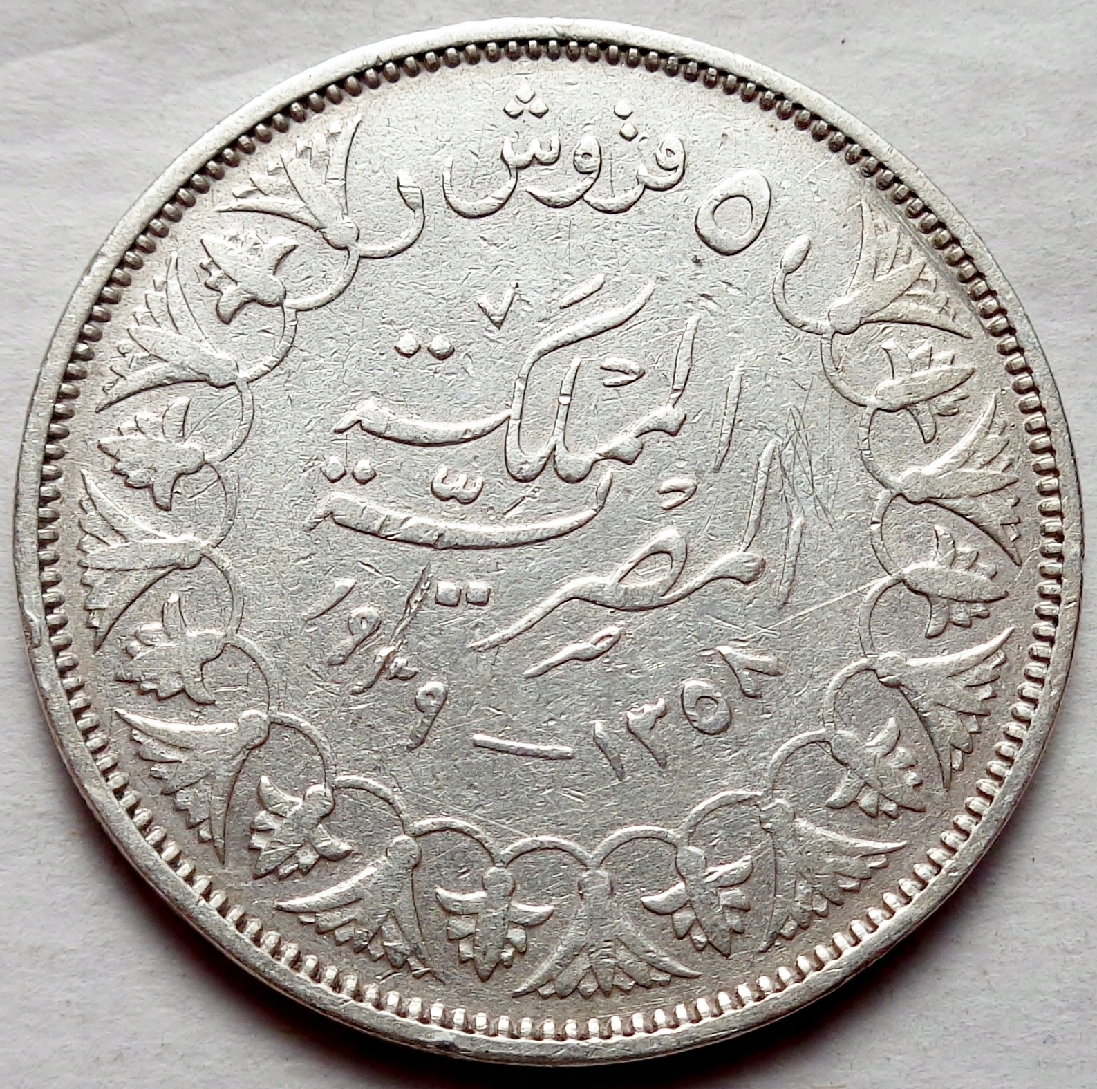 Єгипет - 5 кіршів - 1939 - Фарук I - срібло
