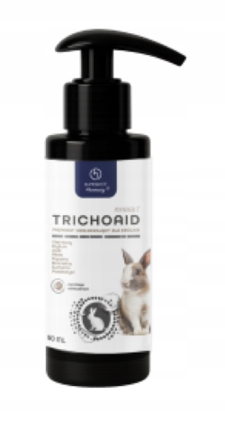 TRICHOAID RABBIT – чрезвычайно эффективный препарат на основе натуральных ингредиентов, который поддерживает процесс удаления шерсти из пищеварительного тракта кроликов. Благодаря тщательно подобранным ингредиентам помогает снизить риск образования комков шерсти (пилобезоаров), которые могут вызвать серьезные расстройства пищеварения и дискомфорт. Содержит льняное масло, которое является ценным источником антиоксидантов и кислот омега-3, поддерживающих здоровье кожи и шерсти. Высокое содержание слизистых веществ, таких как растительная клетчатка и алтей, поддерживает движение пищи и выведение волос с калом, предотвращая образование комков шерсти.