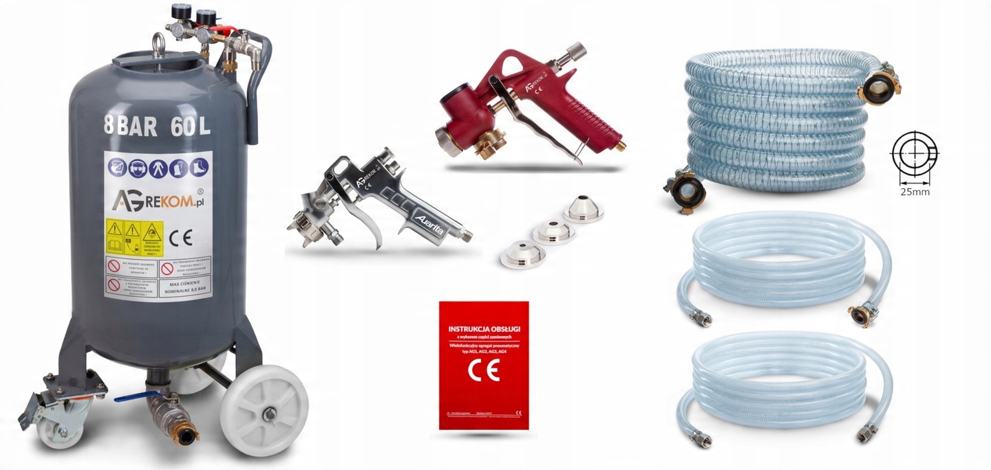 - 5 м армированного шланга с фитингами для подачи воздуха к пистолетам,