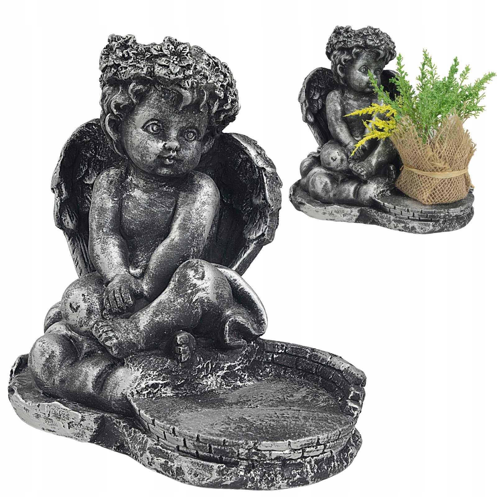 Садовая фигурка из гипса декоративная, надгробие в форме ангела - посеребрение