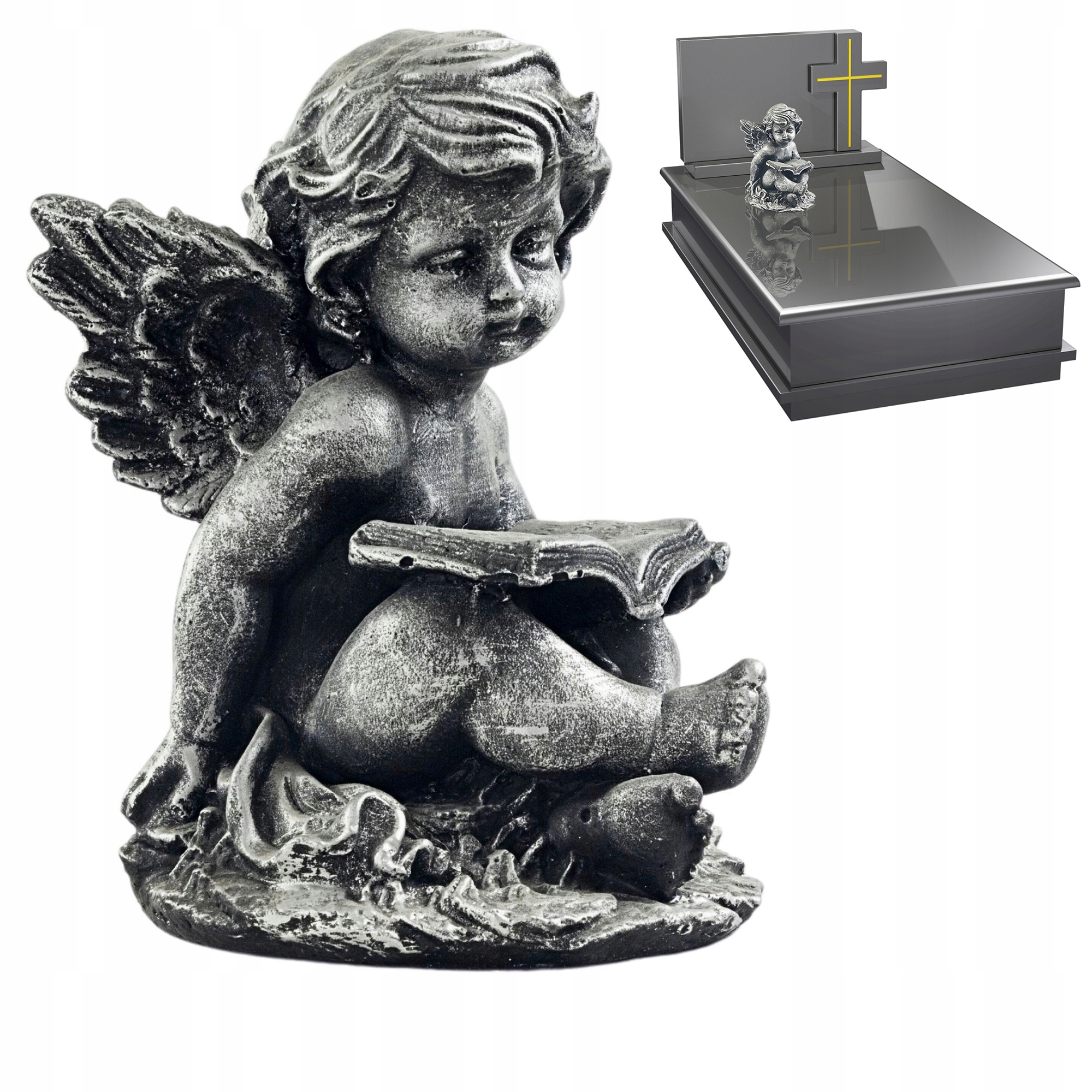 Садовая фигурка из гипса декоративная, надгробие в форме ангела - посеребрение