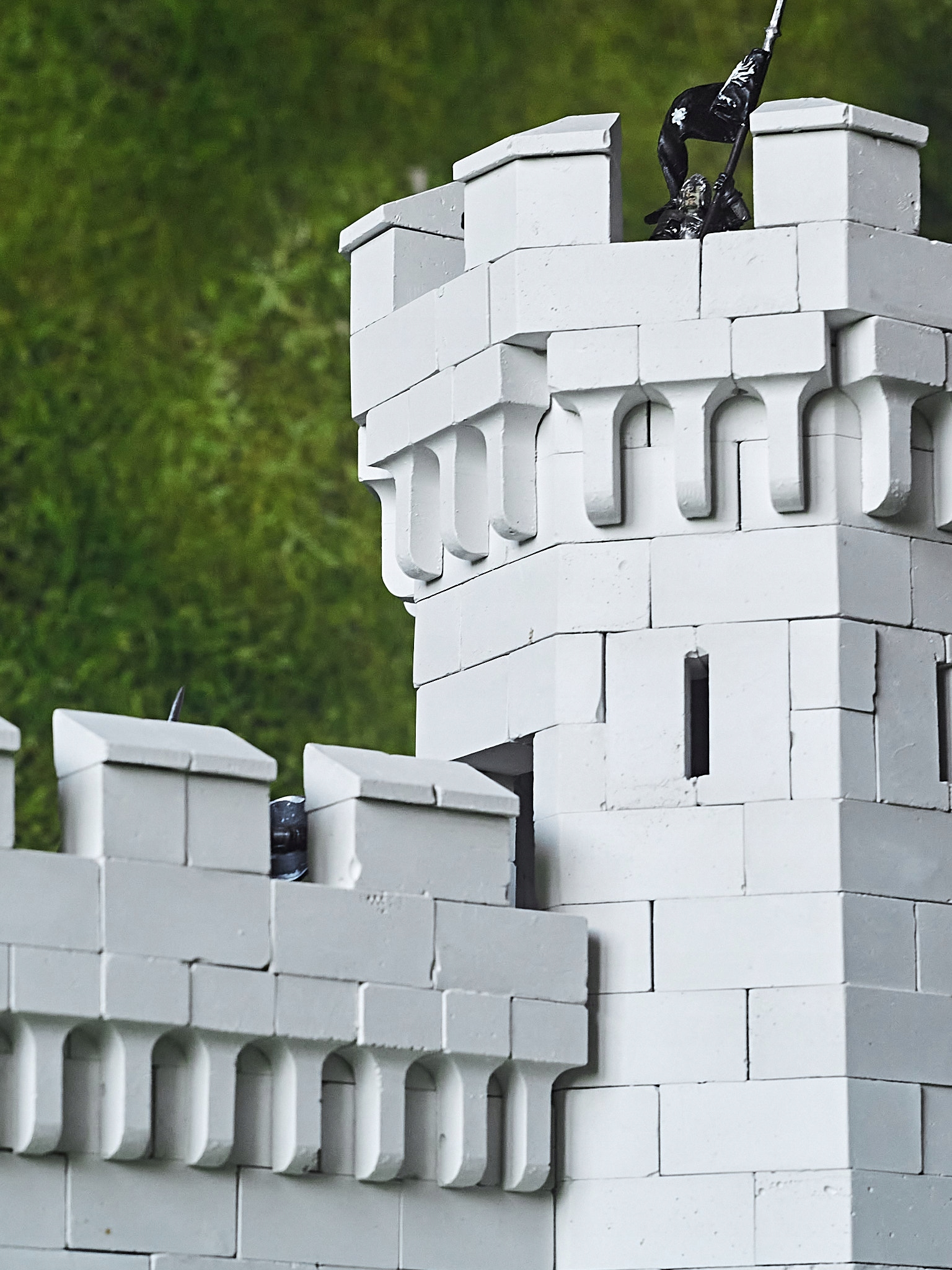 В комплект входят кирпичи, позволяющие создавать карнизы или лестницы (в зависимости от обустройства), бойницы и зубцы.